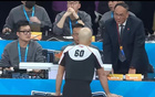 后续第二个技术犯规,是在陈盈骏执行罚球的时候,杨鸣跑到孙翌淼裁判的背后口吐芬芳。裁判忍无可忍将他驱逐。被吹罚2个T之后,杨鸣依旧咆哮技术台。这时候首钢球迷不忍了,一直在让杨鸣闭嘴,并且要求他马上滚出球场。
