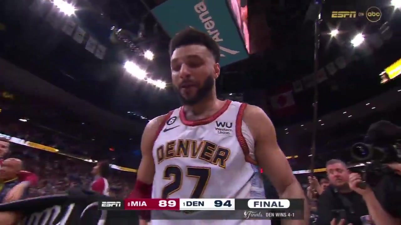 掘金3比1热火穆雷离场时比出还剩一场的手势